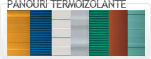 - Panouri termoizolatoare cu spuma poliuretanica sau vata minerala, pentru pereti si acoperisuri, cu prindere aparenta sau ascunsa, utilizate la inchideri constructii civile si industriale (hale metalice, spatii comerciale, constructii agrozootehnice, sali de sport, etc.);
